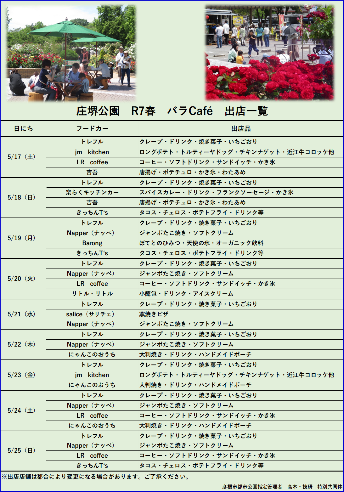 令和7年10月25日(土)~11月1日(土)まで秋バラの開花シーズンに合わせて庄堺公園バラ園で「バラCafé秋」を開催します!